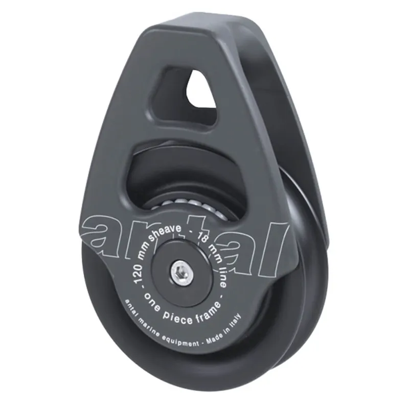 A complete range from 50 to 140 mm sheaves in single, double, triple, fiddle, and deck versions, for webbing or shackle connection. Sizes are based on the range of HR shackles available and on their safe working load (SWL). The HR swivel head. Made in high resistance stainless steel, with three positions: swivelling head, longitudinal lock and transversal lock. HR shackles included. The one-piece-frame. The one-piece aluminium extruded body is the strongest and lightest solution, no assembling pin rivets or screws and nuts. CNC machined - polished - hard black anodized and teflon coated. The composite fibre sheave. The resin (aluminium on larger mod) sheave runs on the main Composite Fibre bearing and on a ground stainless steel hub: low friction highloads - no lubricant required. The self-captive side ball bearing reduces the friction and makes disassembling, cleaning and maintenance very easy. Sheaves are supplied with the s.steel hub, they are available separately.