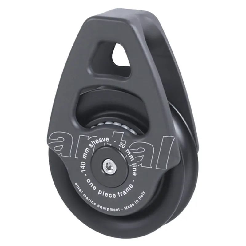 A complete range from 50 to 140 mm sheaves in single, double, triple, fiddle, and deck versions, for webbing or shackle connection. Sizes are based on the range of HR shackles available and on their safe working load (SWL). The HR swivel head. Made in high resistance stainless steel, with three positions: swivelling head, longitudinal lock and transversal lock. HR shackles included. The one-piece-frame. The one-piece aluminium extruded body is the strongest and lightest solution, no assembling pin rivets or screws and nuts. CNC machined - polished - hard black anodized and teflon coated. The composite fibre sheave. The resin (aluminium on larger mod) sheave runs on the main Composite Fibre bearing and on a ground stainless steel hub: low friction highloads - no lubricant required. The self-captive side ball bearing reduces the friction and makes disassembling, cleaning and maintenance very easy. Sheaves are supplied with the s.steel hub, they are available separately.