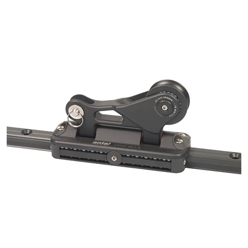 Antal Ball Bearing Car for Outhaul. Ball bearing car in hard black anodized aluminum with four ball circuits: 2 Torlon ball circuits (lower) and 2 Delrin ball circuits (upper). The car will remain on the track even after ball bearing failure (overload). Side windows for easy maintenance and ball bearing cleaning and/or replacement. The car, the track and all components are extruded in high strength alloy and hard black anodized. (Steel parts: AISI 316)
