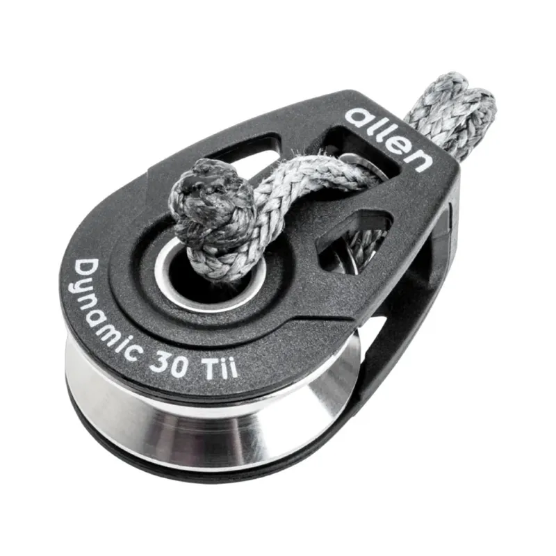 Allen 30mm Dynamic Blocks use the same high quality dynamic bearing, materials and precision engineering as our 20mm Dynamic Block range. Allen's high strength and rope friendly stainless steel ultra-strap makes them amongst the strongest and most reliable ball bearing blocks in their class.