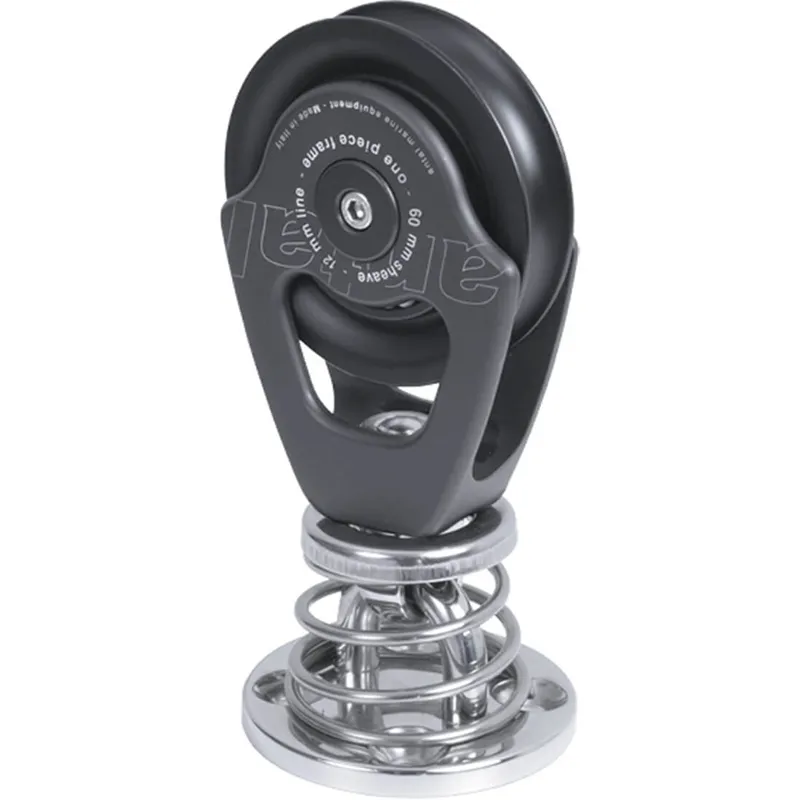 A complete range from 50 to 140 mm sheaves in single, double, triple, fiddle, and deck versions, for webbing or shackle connection. Sizes are based on the range of HR shackles available and on their safe working load (SWL). The HR swivel head. Made in high resistance stainless steel, with three positions: swivelling head, longitudinal lock and transversal lock. HR shackles included. The one-piece-frame. The one-piece aluminium extruded body is the strongest and lightest solution, no assembling pin rivets or screws and nuts. CNC machined - polished - hard black anodized and teflon coated. The composite fibre sheave. The resin (aluminium on larger mod) sheave runs on the main Composite Fibre bearing and on a ground stainless steel hub: low friction highloads - no lubricant required. The self-captive side ball bearing reduces the friction and makes disassembling, cleaning and maintenance very easy. Sheaves are supplied with the s.steel hub, they are available separately.