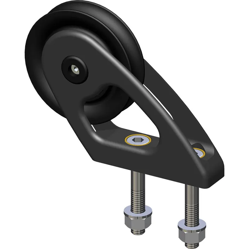 A complete range from 50 to 140 mm sheaves in single, double, triple, fiddle, and deck versions, for webbing or shackle connection. Sizes are based on the range of HR shackles available and on their safe working load (SWL). The HR swivel head. Made in high resistance stainless steel, with three positions: swivelling head, longitudinal lock and transversal lock. HR shackles included. The one-piece-frame. The one-piece aluminium extruded body is the strongest and lightest solution, no assembling pin rivets or screws and nuts. CNC machined - polished - hard black anodized and teflon coated. The composite fibre sheave. The resin (aluminium on larger mod) sheave runs on the main Composite Fibre bearing and on a ground stainless steel hub: low friction highloads - no lubricant required. The self-captive side ball bearing reduces the friction and makes disassembling, cleaning and maintenance very easy. Sheaves are supplied with the s.steel hub, they are available separately.