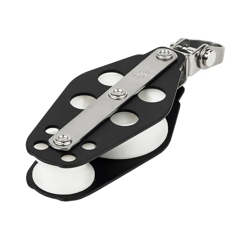 Schaefer Series 3 37mm aluminum fiddle block with front side shackle. Works with 303-85 or 303-53 for a 4:1 system.