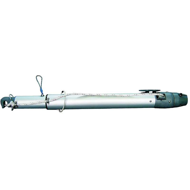 All length adjustments are made from the mast end of the pole by simply un-cleating the control line, extending or retracting the pole to the proper length, and then re-cleating the line. This eliminates the need to go forward to manually adjust the length, which makes pole deployment much safer.