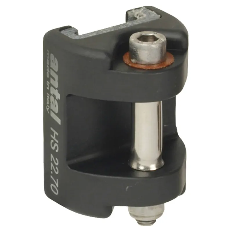 Simple slider. This slider takes an intermediate position between two sliders with joint. It is sewed to the sail with a webbing. It usually has small dimensions as it is the slider with the lowest load in the system. Slider with joint. Its function is to be connected to a batten receptacle with a threaded pin. It is usually bigger than the simple slider because battens stress sliders more than webbings. Antal designs symmetric batten receptacles mounted inside the batten pocket. Headboard slider. The slider which takes up the highest loads is realized double, triple or quadruple. With higher loads the headboard slider will need a higher number of sliders, or sliders with greater dimensions. Large mainsails or sails with wide roach require stronger headboard sliders. Headboard sliders are provided with a pivoting bracket for the coupling of the headboard. Also, Antal makes Fast release push pins available for a quick connection between sail and slider. Double slider. Where reefing points are and in correspondence of the clew angle, one may want to use a double slider with a double webbing connection to the sail. This because the outhaul and reef lines load up the tack angle at the mast.